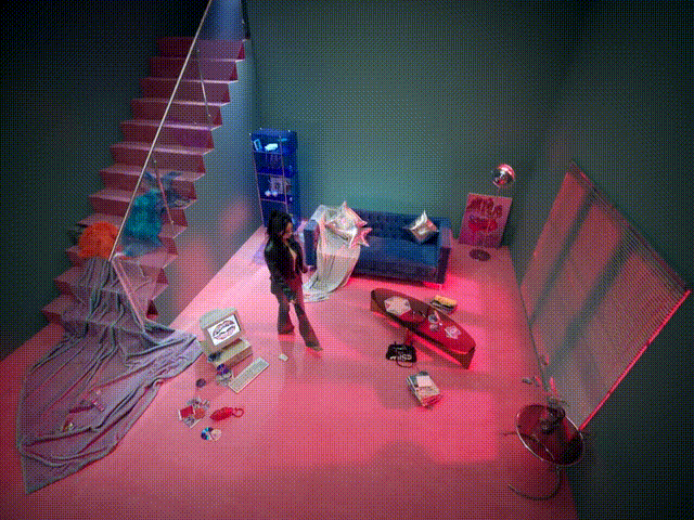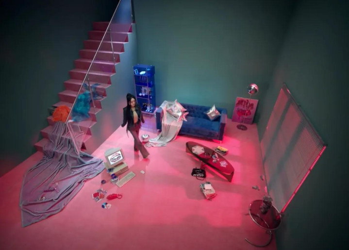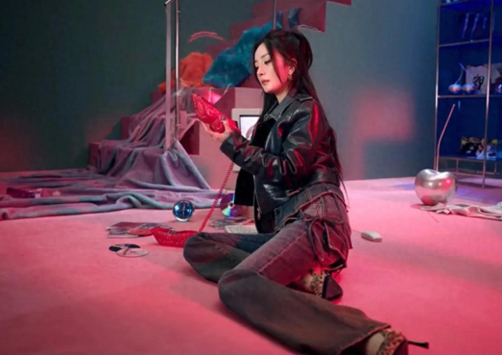 杨幂坐在地上拿着CD机听音乐,她的脸精致小巧,看着就像是一张建模脸,美的很不真实。杨幂这次的广告片表现的很出色,有种机械姬的前卫感,她很适合这种风格。