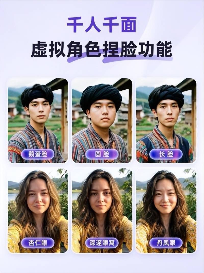 为告别千篇一律的 "AI 脸 ",Wan2.7-Image 强化了虚拟形象捏脸功能,支持从骨相、眼眸到五官细微处的全方位定制,比如更换提示词中的脸型(鹅蛋脸、圆脸、方脸、长方脸等)、眼部特征(杏仁眼、深邃眼窝、圆眼、丹凤眼等),实现 " 千人千面 "。