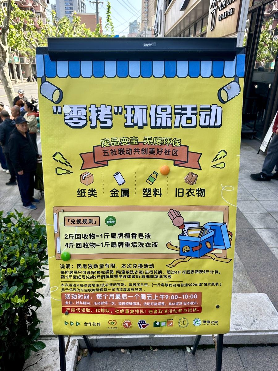 该组织总干事宋慧介绍,这个活动每月最后一个周五举办,参与人数从最开始的十几人增加到如今的每次上百人。仅宝山路街道点位,去年就有近1000人次参加,累计减少约1000个原生塑料瓶的消耗,共回收2466.4千克可回收物。