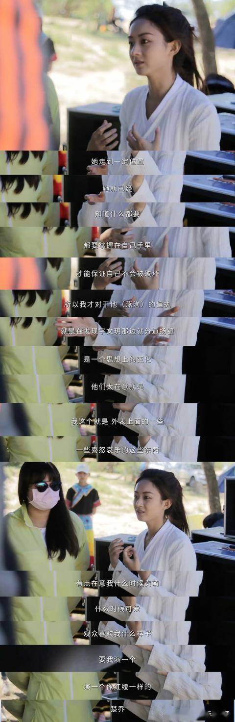 第五张图和第六张图是赵丽颖被邀请做演讲时,在谈到出演《楚乔传》时,她的眼中全是星星,楚乔这个人物对赵丽颖有些非常特殊的意义。她把她当做演员生涯的一次重大挑战,也发自内心的尊重楚乔这个人物角色。她说“我不希望大家看到电视剧里的女性角色为了男人斗来斗去,我希望她们拥有更丰富的思想,积极的去追求自己的信仰”。