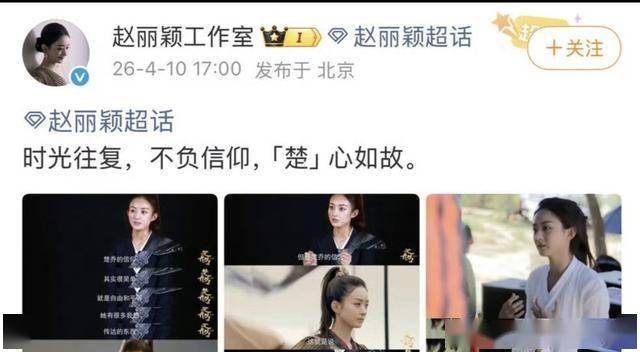 随着电视剧《冰湖重生》的播出,打着《楚乔传》续集的名号,观众们不免把赵丽颖版和黄杨钿甜版的楚乔放在一起 进行对比。2026年4月10日,赵丽颖工作室发出多张赵丽颖的采访图。第一张图和第二张图以及第三张图是赵丽颖在拍摄《楚乔传》的后期回答楚乔这个人物内核时所表达的:楚乔的信仰,是自由和平等。而赵丽颖也在极力演绎楚乔的坚韧和倔强。赵丽颖眼中的这部剧不局限于塑造爱情,还有对理想的追求。
