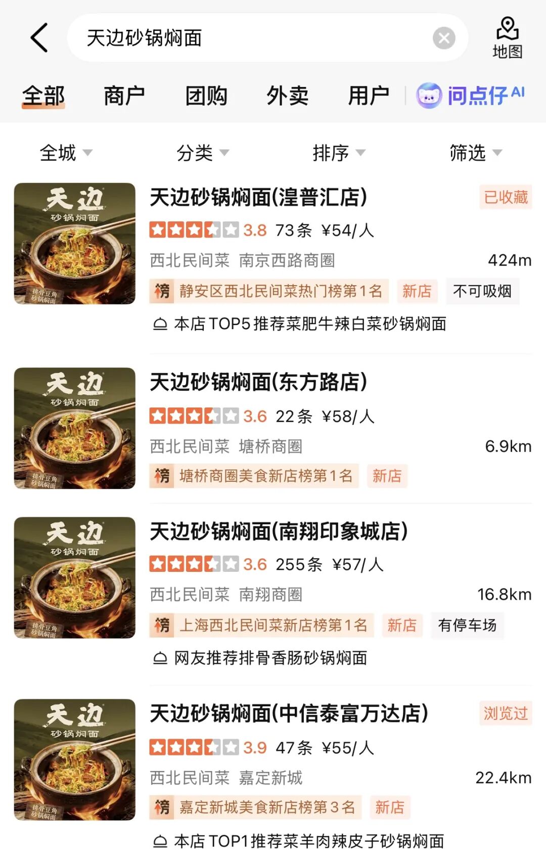 大众点评显示均为新店,
