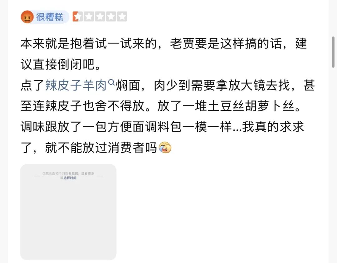 焖面里羊肉有点少,